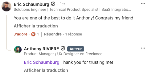 Product ownership, conception UX, structuration produit, recherche utilisateur, gestion du backlog, rédaction de user stories, coordination des équipes, pilotage du delivery, tests QA.